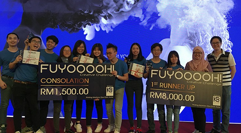 在这次活动中,来自思特雅大学创意艺术与设计学院的三个团队赢得了奖项。“Monster”团队凭借名为“Nasi Lemak”和“Design Zone”的参赛作品,分别获得8,000令吉及1,500令吉的现金奖,分别获得亚军及安慰奖。“Project Code 005”和“This is Non-Fiction”团队凭借其名为“Connect”和“The Art of Tribal”的参赛作品获得安慰奖,获得1500令吉奖励。“Monster”团队成员之一Chong Kai Qi表示,两个不同的作品获得两个奖项是她人生中最好的经历,因为他们在创造作品方面的努力得到了专业人士的认可。她说:“当我们被KB Color Image公司选为比赛的决赛入围者时,我们真的很高兴。我们不仅成为了优胜者之一,而且通过创作我们的作品,我们也获得了在真实设计领域工作的经验。我们的灵感来自于我们在UCSI附近看到的一辆没有任何设计的白色快餐车,因为这基本上是我们学生经常去的地方。我们认为餐车需要我们的一些创造力,使其看起来更有趣。”