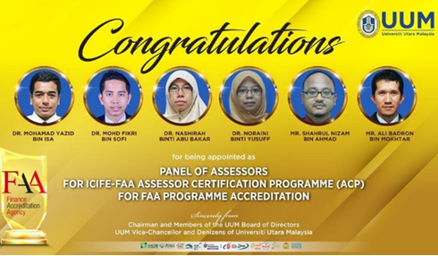 马来西亚北方大学(UUM)获得了国际伊斯兰金融教育者理事会(ICIFE)的信任,来自伊斯兰商学院和经济、金融和银行学院的六名讲师被任命为金融认证机构(FAA)的认证评估员。六名讲师分别是Mohamad Yazid Isa博士、Mohd Fikri Sofi博士、Nashirah Abu Bakar博士、Noraini Yusuff博士、Ali Badron Mokhtar和Shahrul Nizam Ahmad。