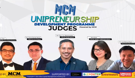 代表拉曼大学参加比赛的是拉曼大学会计与管理学院的学生Kow Shuen Teng,他的商业计划书名为“Trivia”,以及预科学生Quennie Lim Jia-Yinn和Karmughil Jaya Sangkar,他们的计划书分别名为“ValorQ”和“Cyberdocks”。 Max教授是MCM GIC会员周虚拟博览会和UDGP决赛的组织主席,在他的欢迎演讲中说:“我想祝贺最终入围者,因为我相信你们所有人都为你们的计划书付出了数周的努力。我也要感谢所有赞助我们的人,感谢他们的慷慨帮助,让我们的青年企业家梦想成真。我们的愿景是在今天塑造明日的企业家。因此,我要感谢所有的评委、我的朋友们和同事们,感谢他们提供的培训和指导。我要感谢拉曼大学、泰莱大学和马来西亚理工大学等大学提供的课程以及为年轻大学生创业提供的培训场所。”